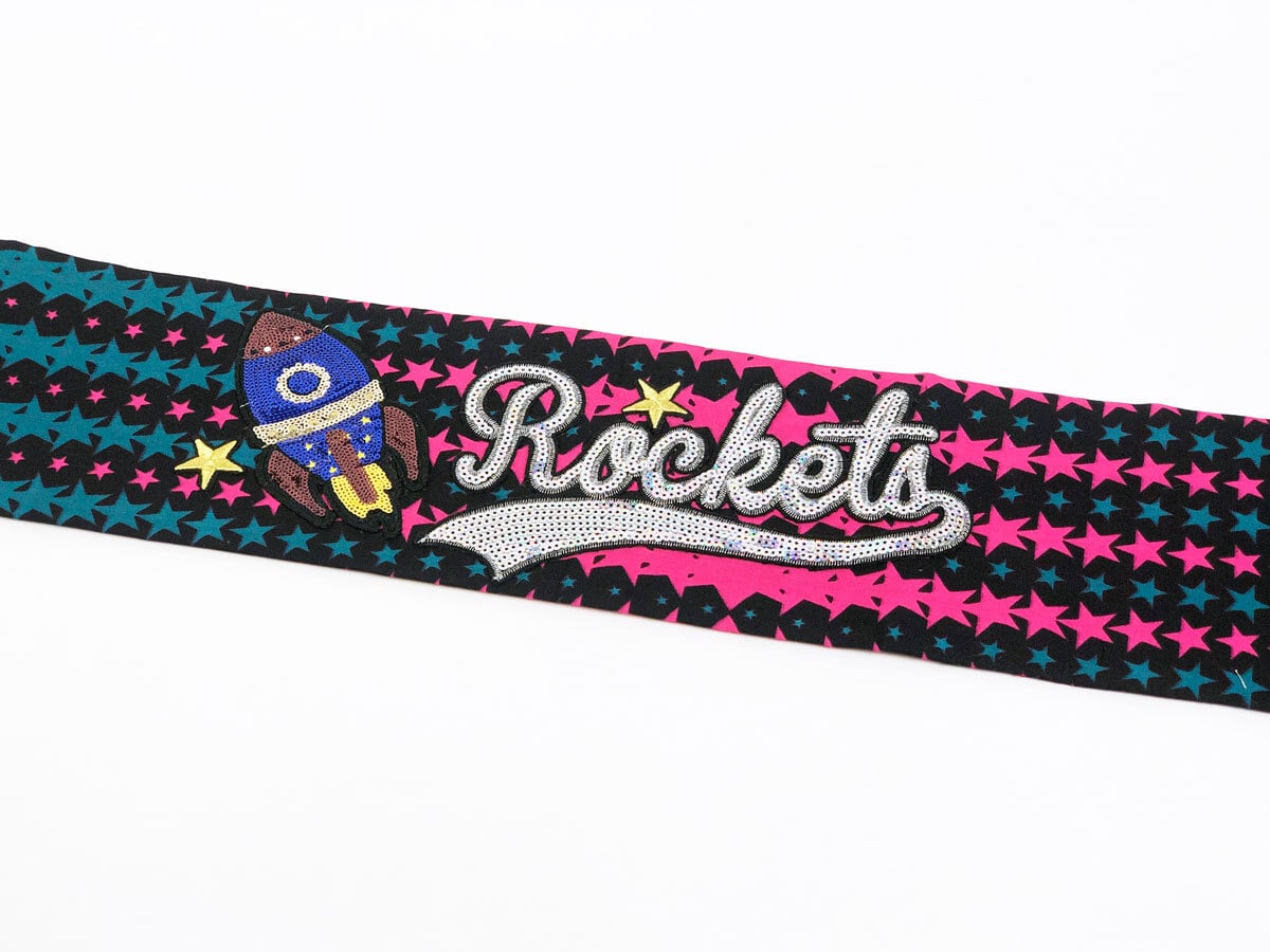 お太鼓にはパンコールをふんだんに使った猫のワッペンが縫い付けられており、キラキラでとても個性的なデザインです。